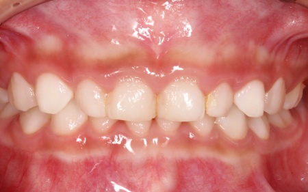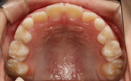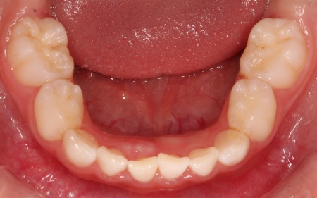 | はじめの相談内容 | 「乳歯がデコボコに生えている。また、乳歯がギチギチに生えていて永久歯の生えるスペースがなさそうなので、早めに治療を始めたい」とご相談いただきました。 また、患者様のお兄様も当院で矯正治療をされていました。 |